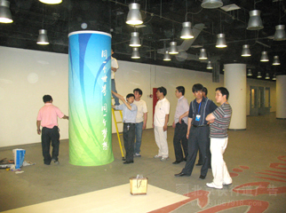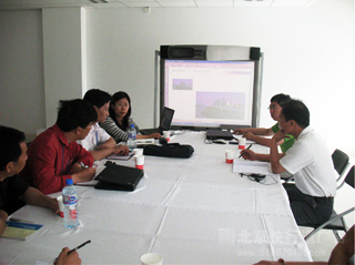 设计人员讨论奥运景观物品设计方案