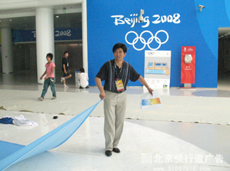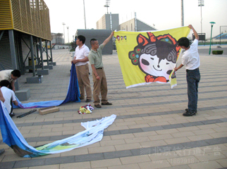 水立方安装灯杆旗