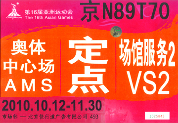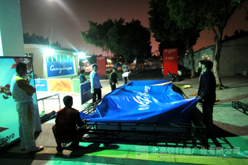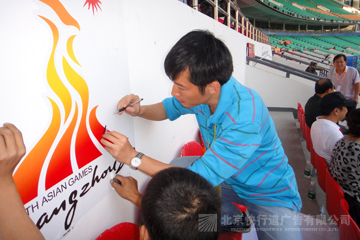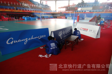 2010年, 我公司还中标服务广州亚运会赛场广告服务项目,为26个主要比赛场馆【广东奥林匹克中心体育场、广东奥林匹克网球中心、广东奥林匹克游泳跳水馆、广东奥林匹克中心马术场(现代五项)、广东奥林匹克中心射击场、广东奥林匹克中心射箭场、广东奥林匹克中心棒球场、广东奥林匹克中心曲棍球场、增城体育馆(体育舞蹈)、增城荔城龙舟比赛场、广州大学体育馆(击剑)、广东工业大学体育馆(手球)、广东工业大学体育场(板球)、华南理工大学体育馆(柔道、摔跤)、华南理工大学体育场(足球)、华南师范大学体育馆(手球)、广东药学院体育馆(排球)、中山大学体育馆(排球)、广东外语外贸大学体育馆(排球)、佛山岭南明珠体育馆(拳击)、佛山世纪莲游泳跳水馆(花样游泳)、广东国际划船中心、广州亚运城综合体育馆、广州自行车轮滑极限中心、大学城公路自行车比赛、大学城马拉松比赛】提供设计、生产、制作、仓储、运输、安装、赛时维护、转换、拆除、复原等全过程的一条龙优质服务。特别是在亚运比赛期间,中国电信、中国移动、三星、广汽丰田、361度等企业紧急更新广告,我们做到连夜设计、制作、安装,确保第一时间在赛场直播中出现新的广告,受到各赞助商好评。